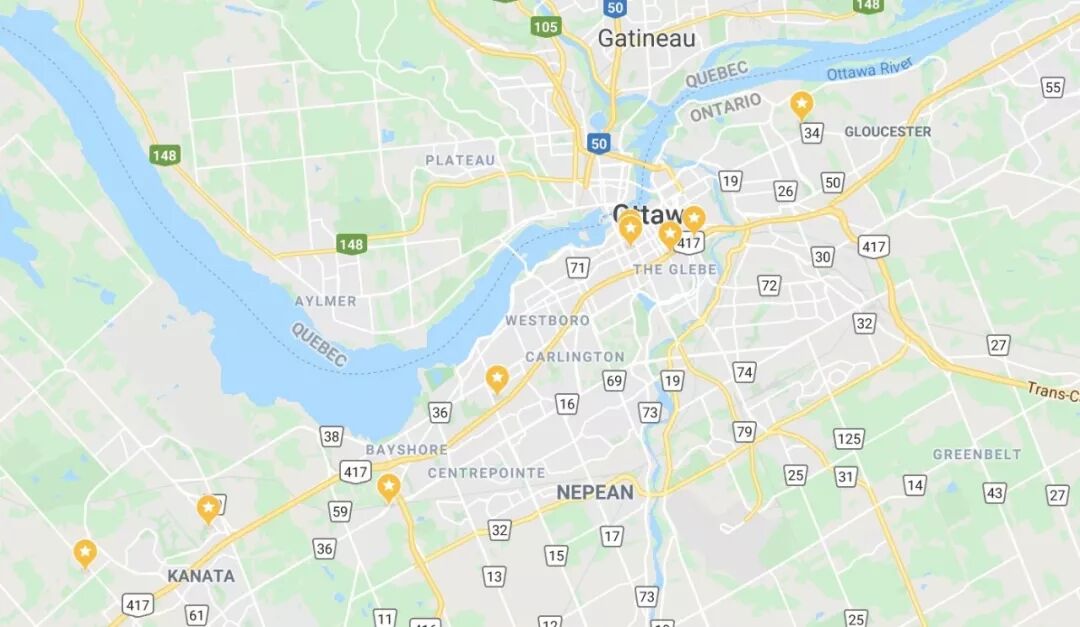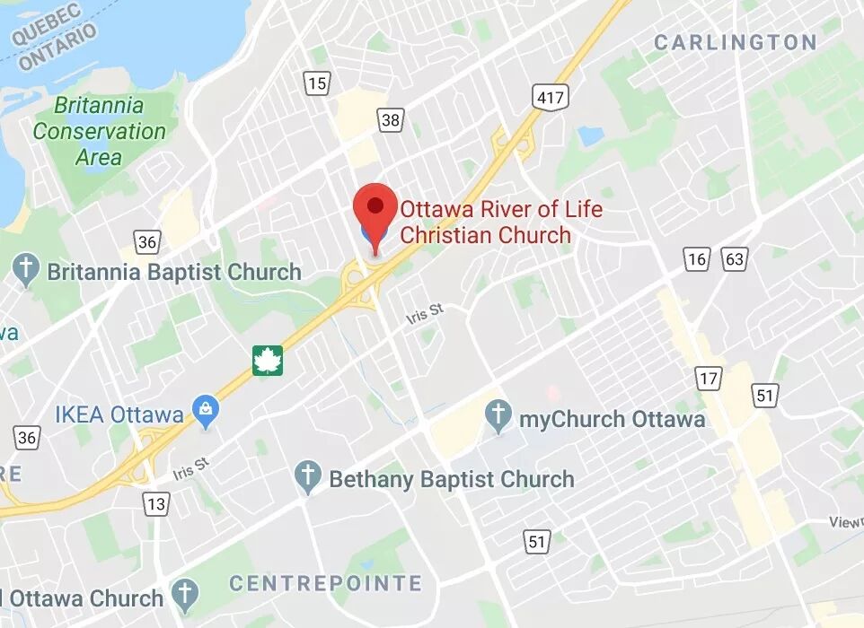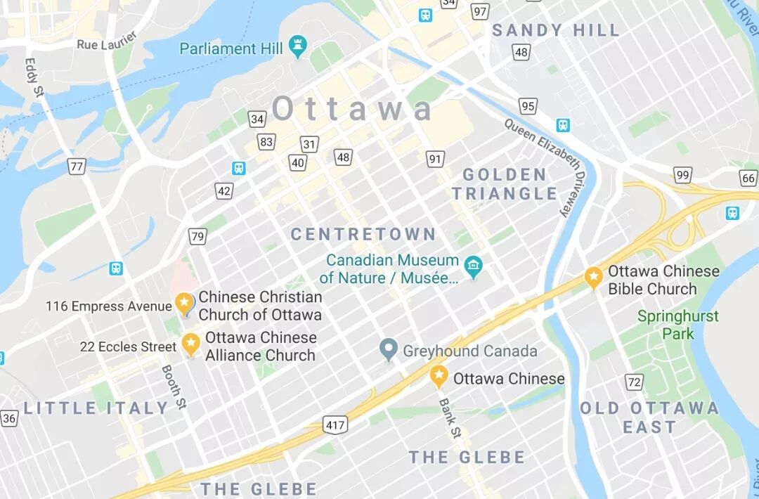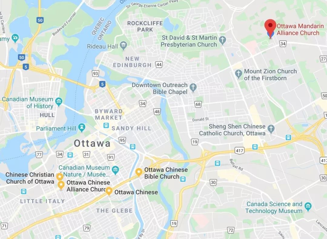 中部渥太华Centertown 城中四间教会 (黑板上找此颜色 快速定位教会名字)