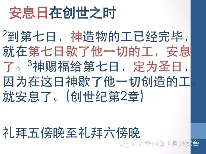 字根的意思为,停止,断念,那从这个词根,我们大概可以推测,这一天称为安息日应该是要操练在行为和思想上的暂停。