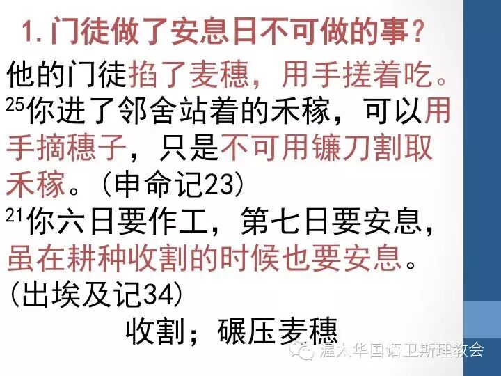 大家可能在第一次念时会想,门徒做安息日不可做的事情是不是他们偷麦穗了?在别人的地里吃麦穗?