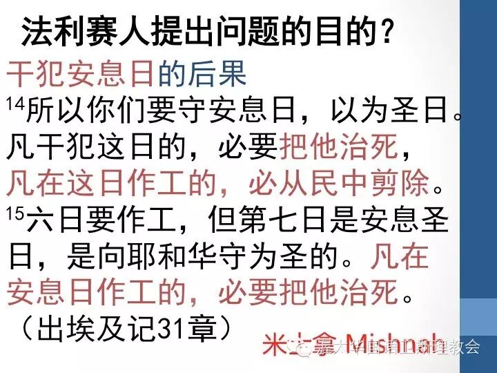 可是我们更要知道,法利赛人提出耶稣的门徒做了不该做的事,这样干犯安息日的后果是什么? 如下图中所示的,要把干犯安息日的人从民中剪除、治死。