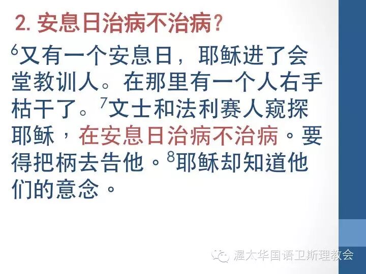 在将安息日在旧约中出现过的内容查看过一遍之后,我们来看路加福音这段经文,耶稣对于如何守安息日与法利赛人、文士有什么样的讨论。