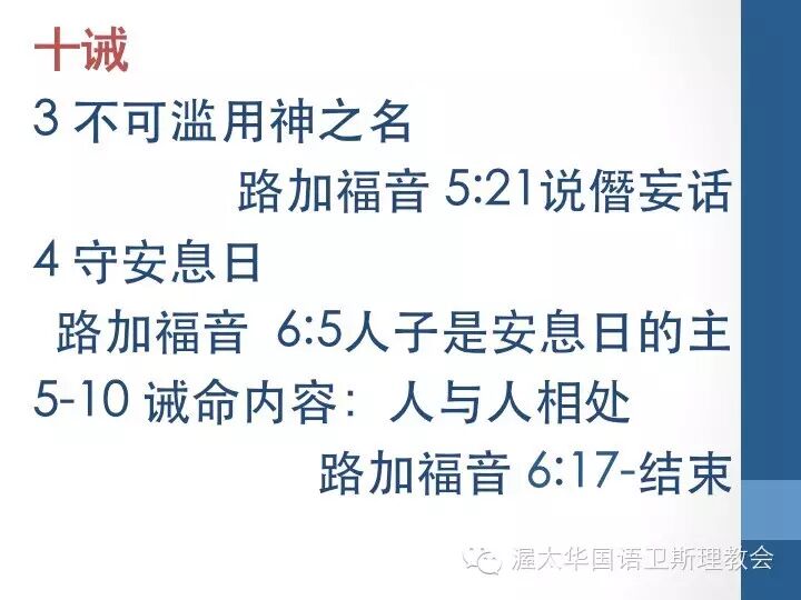 如果我们在仔细的看这段在路加福音中的安排,就能清楚的看到作者在这里内容安排上的深意。正好应对这十诫所提到的,第3-10诫中所提到的内容。在这几段中,耶稣的言行为我们带来了对律法及对神的新理解。